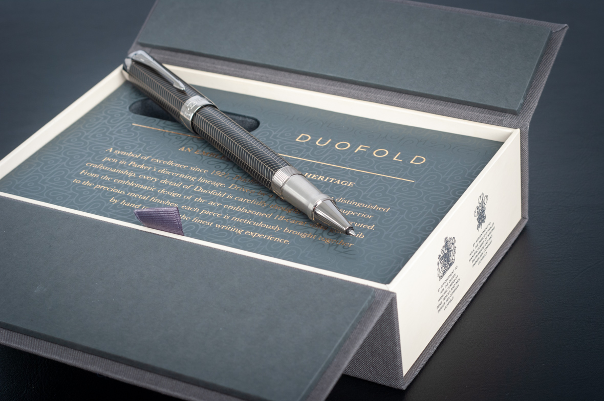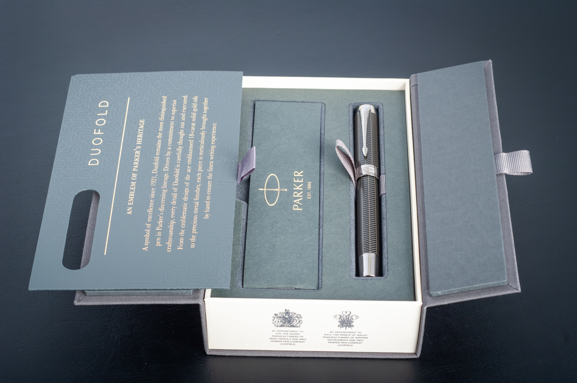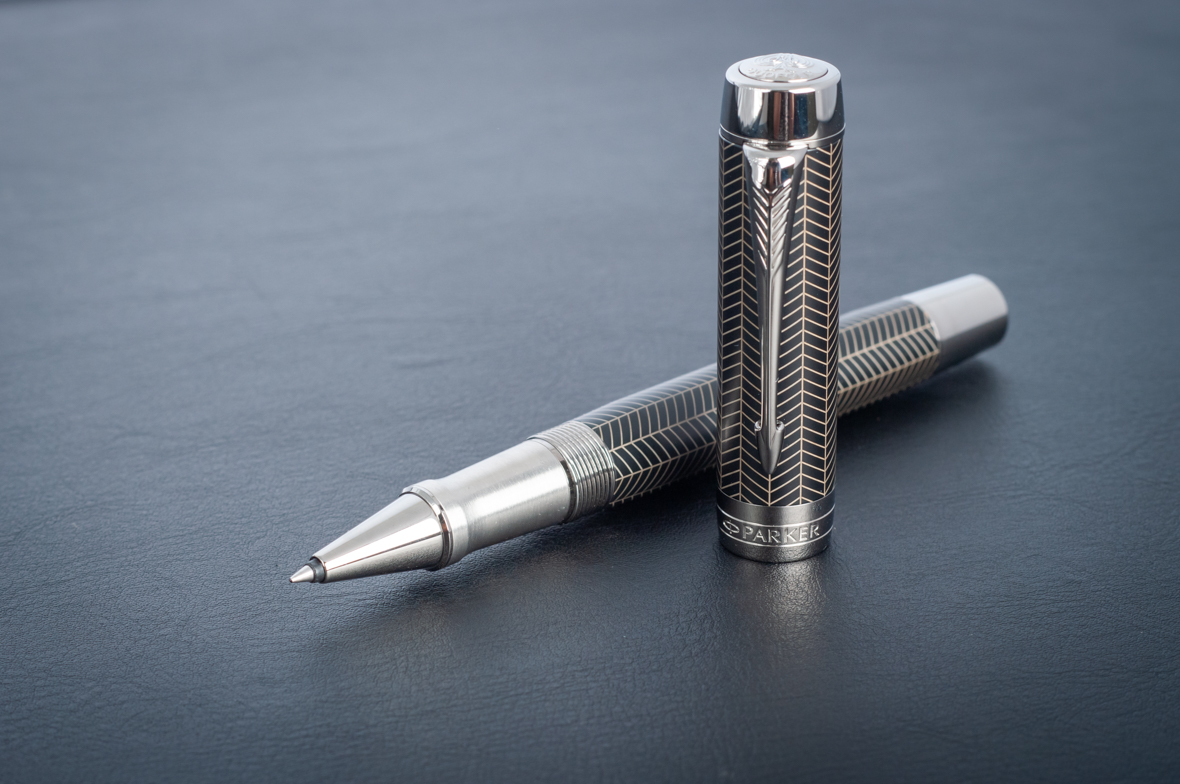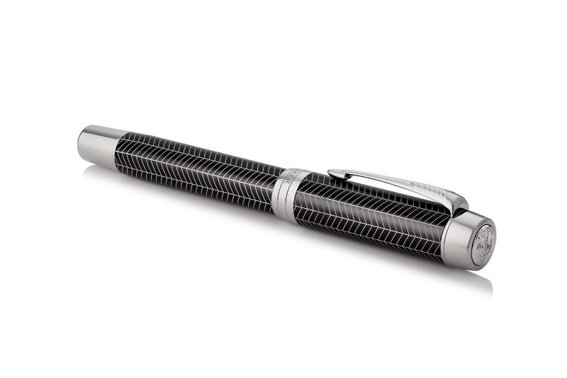 Ручка роллер Parker Duofold Prestige Centennial Black Chevron CT от официального дилера Parker в Миассе. Вы можете дополнительно заказать гравировку, которая подчеркнет Вашу оригинальность и придаст памятность статусному подарку. Все ручки Паркер поставляются в фирменном футляре.