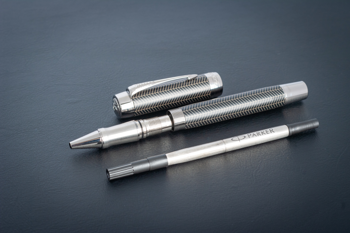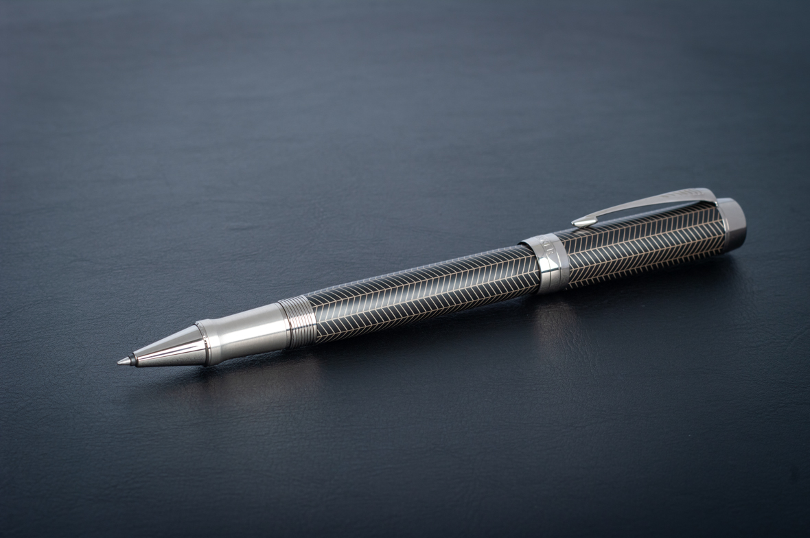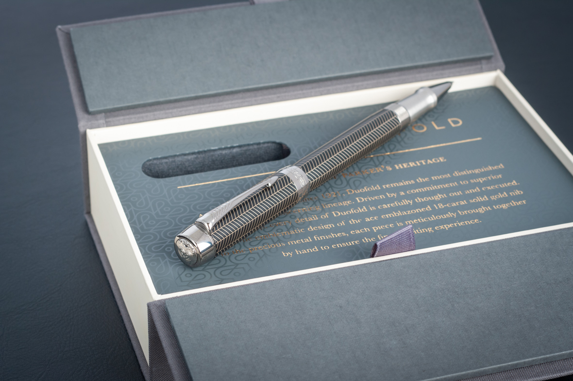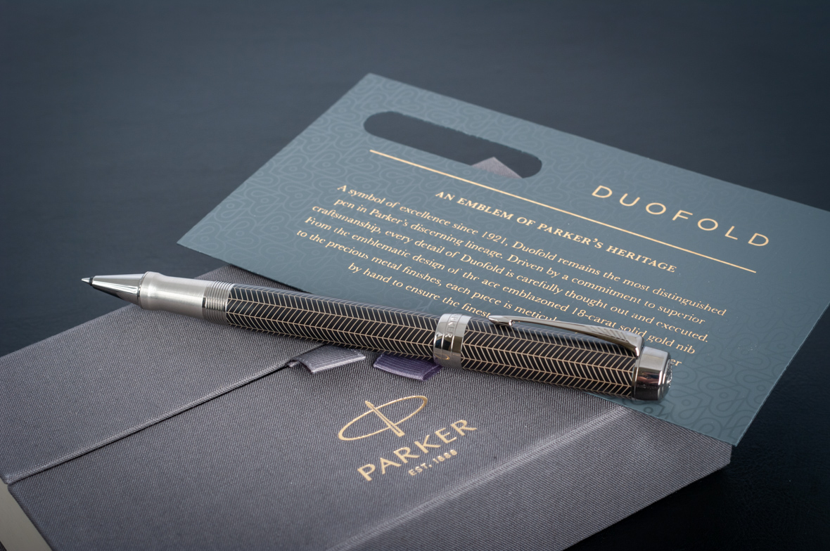 Ручка роллер Parker Duofold Prestige Centennial Black Chevron CT от официального дилера Parker в Миассе. Вы можете дополнительно заказать гравировку, которая подчеркнет Вашу оригинальность и придаст памятность статусному подарку. Все ручки Паркер поставляются в фирменном футляре.